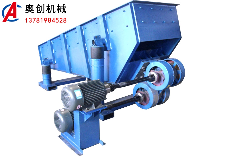 往復(fù)式給料機(jī)簡介:往復(fù)式給料機(jī)是利用曲柄連桿機(jī)構(gòu)拖動下傾5°的底板在輥上做直線往復(fù)運(yùn)動,當(dāng)電動機(jī)開動...